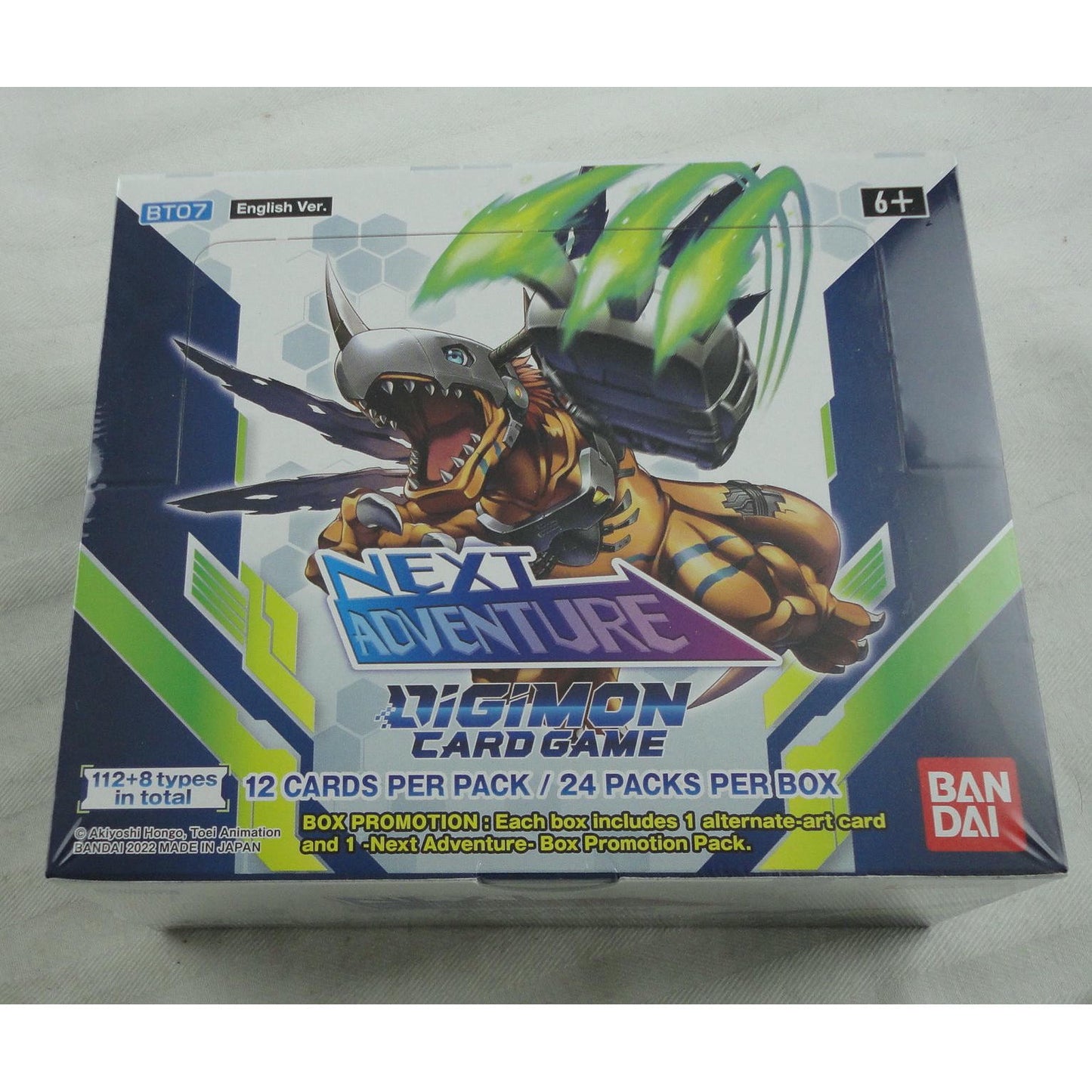 Explore the thrilling Digimon Trading Card Game with the Next Adventure Booster Display Box, featuring 24 packs of exciting cards.